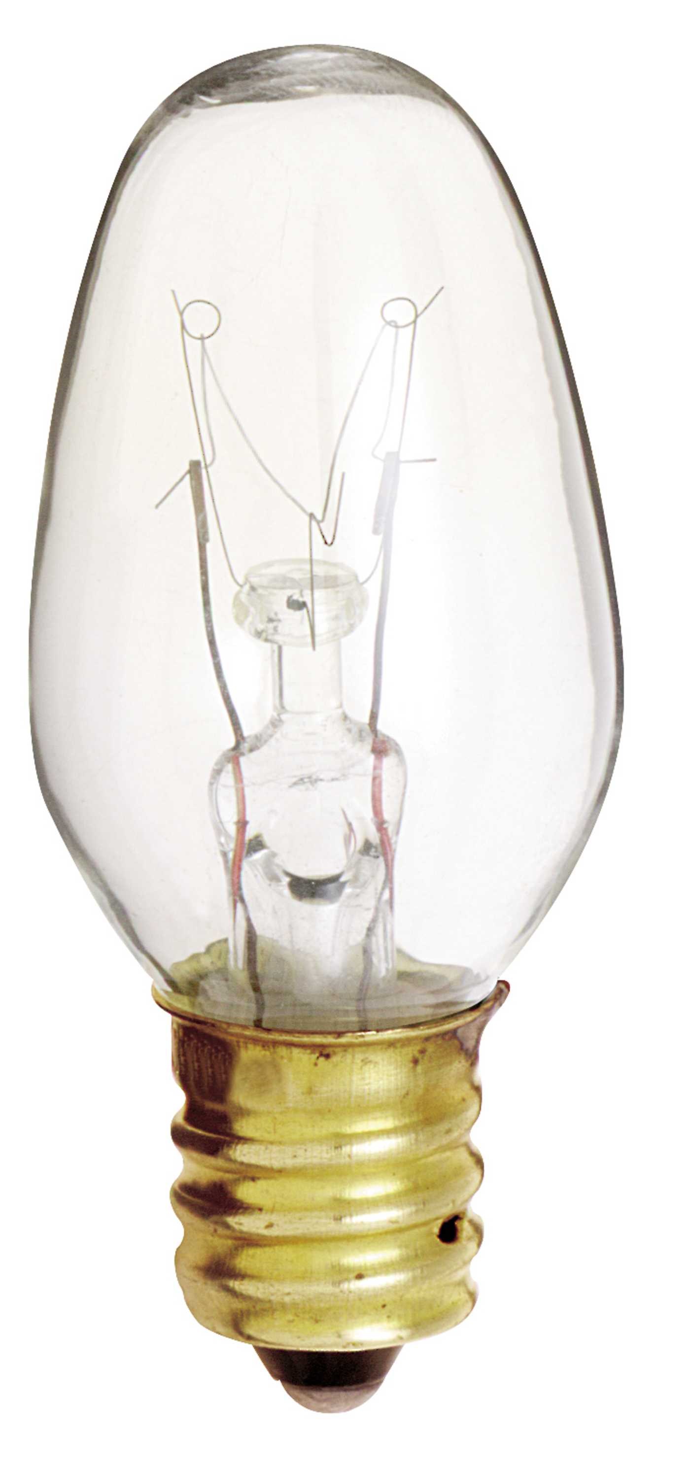 SATCO 7W C7 NIGHT LIGHT BULBSatco 7W C7 night light bulb with clear finish and candelabra (E12) base. Provides a warm, soft glow perfect for night lights, decorative fixtures, and indicator lights. Dimmable for adjustable brightness.