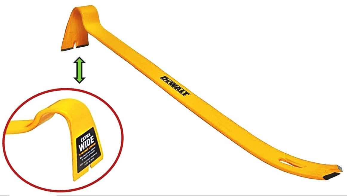 DEWALT flat bars are made from spring steel for strength and durability. They have an extra wide prying end for leverage and pry surface. They have multiple nail pullers for flexibility and nail removal and pointed beveled ends for penetration and nail pulling.