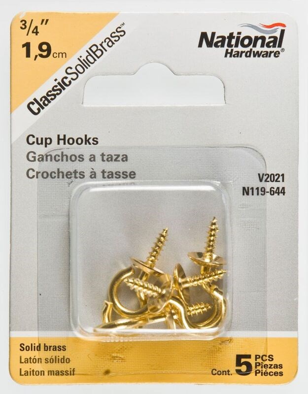 Solid Brass Cup Hook, 3/4" ~ Pack of 5
