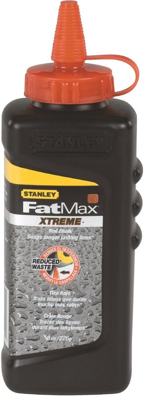 STANLEY FATMAX XTREME RED CHALK 8 OZStanley FatMax Xtreme 47-821 Red Chalk is a weather-resistant formula designed for professional construction applications. This waterproof chalk adheres to wet and dry surfaces, snapping longer lasting lines in challenging conditions.