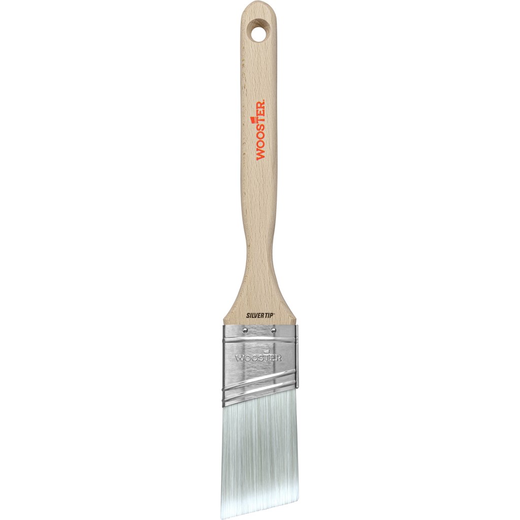 WOOSTER SILVER TIP 1-1/2" ANGLE SASH BRUSH (5228)Premium paint brush featuring Wooster's exclusive CT (Chemically Tipped) polyester filaments for ultra-smooth paint release with virtually no brush marks. The 1-1/2" semi-oval angle sash design excels at cutting in trim, edges, and detail work on all paint types.