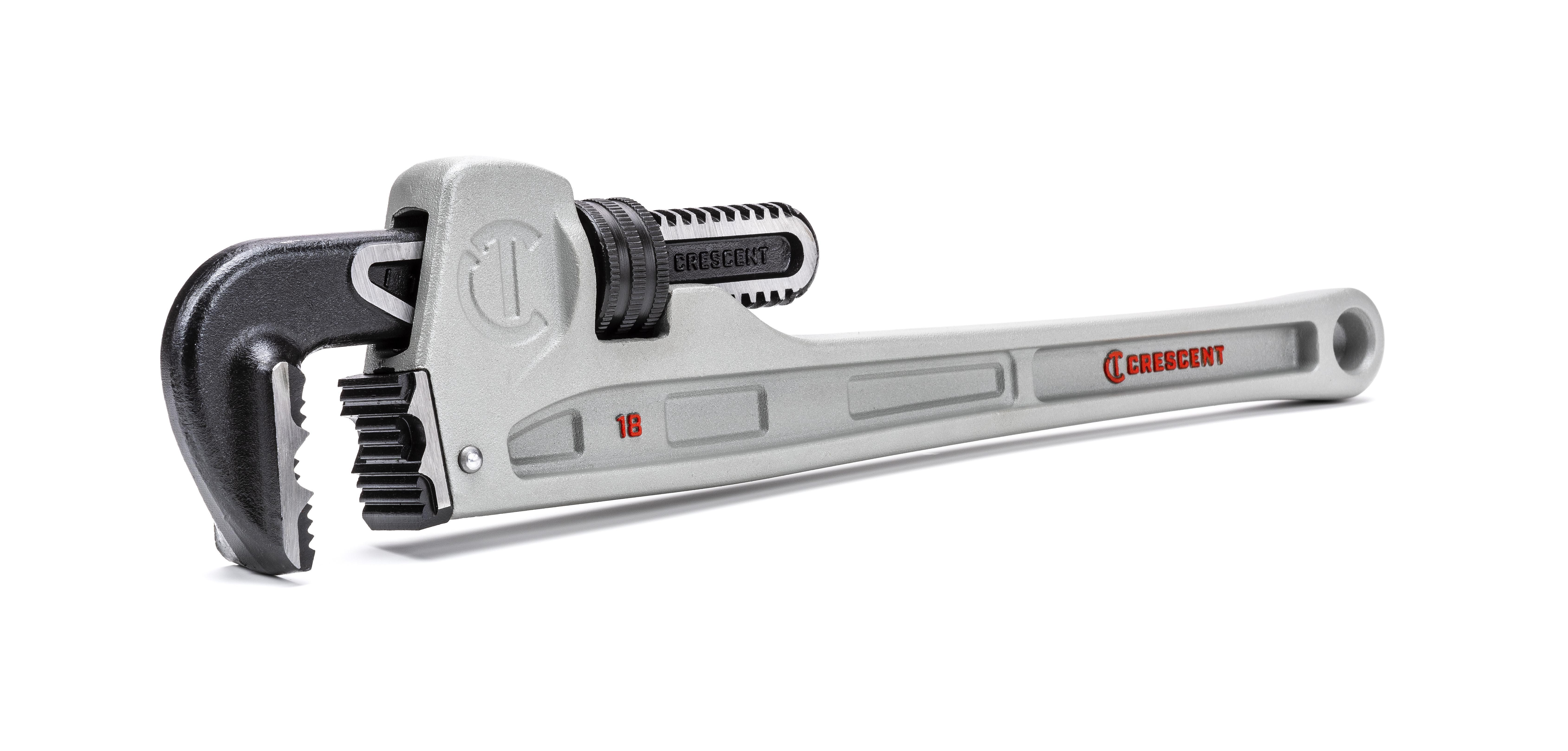 CRESCENT ALUMINUM PIPE WRENCH - 18"Work with less fatigue using this Crescent aluminum pipe wrench. At 40% lighter than traditional cast iron wrenches, the aluminum body reduces strain during overhead and extended use without sacrificing strength.