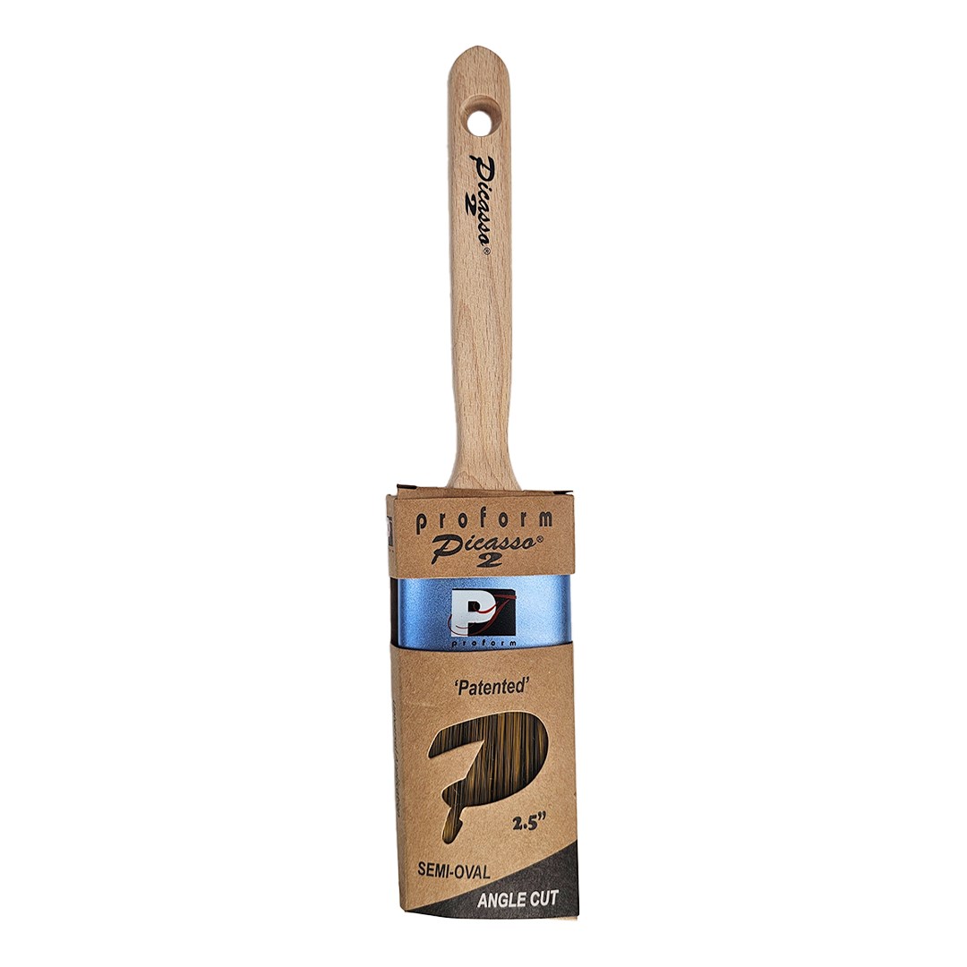 PROFORM PICASSO ANGLED SASH BRUSH - 2-1/2"Get professional results with the Proform Picasso angled sash brush. This next-generation brush features the patented Hardline no-drip interior and a seamless aluminum ferrule for durability and clean paint release. The Generation 2 PBT filament blend provides longer lasting performance.