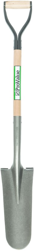 14" D-GRIP DRAIN SPADE- ProValue drain spade has heat-treated 14" long carbon steel head with clear lacquer finish