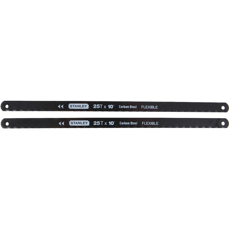 CARBON STEEL HACKSAW BLADE - 2-PACKStanley high carbon steel hacksaw blades are designed for cutting mild steel, cast-iron, aluminum, and copper. These general-purpose blades deliver reliable performance and good value for everyday cutting tasks.