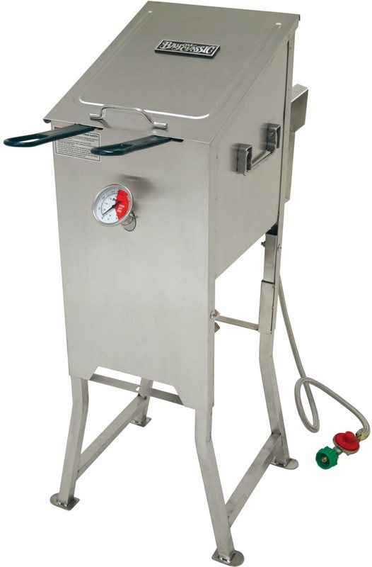 Bayou Classic 4-gallon fryer is one of the most efficient deep fryers on the market today! Includes 2 stainless steel fry carts, temperature gauge, drain valve, extension legs, and 10-PSI regulator kit with stainless-steel braided hose