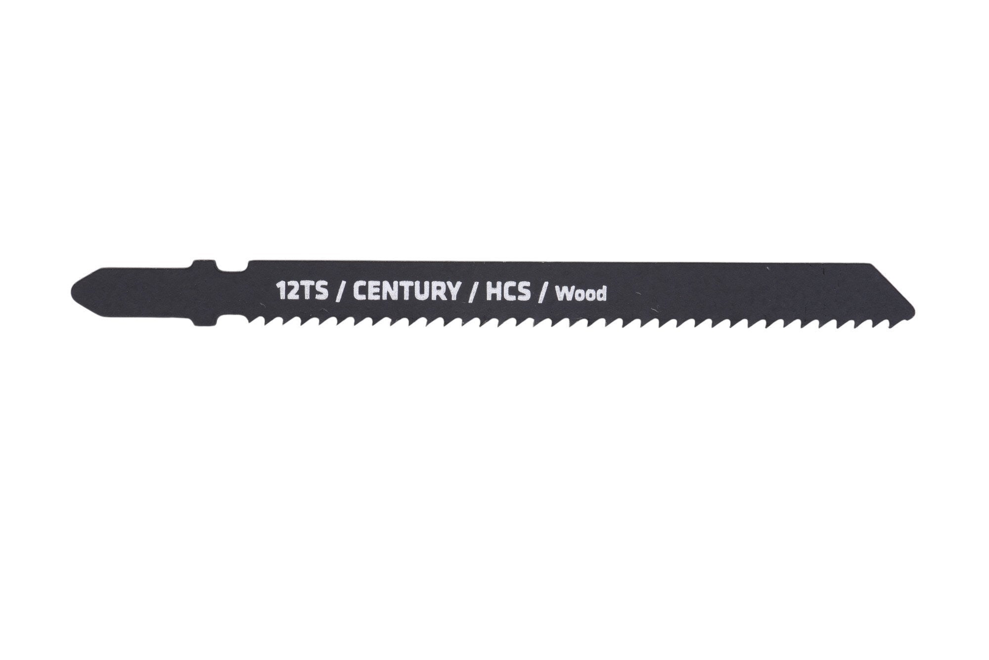 CENTURY DRILL HCS SCROLL JIGSAW BLADE 12TSCut tight curves and intricate shapes with this Century Drill 12TS scroll jigsaw blade. The narrow blade profile allows sharp turns, while the 12 teeth-per-inch high carbon steel design delivers smooth cuts in wood, plastic, and composite materials.