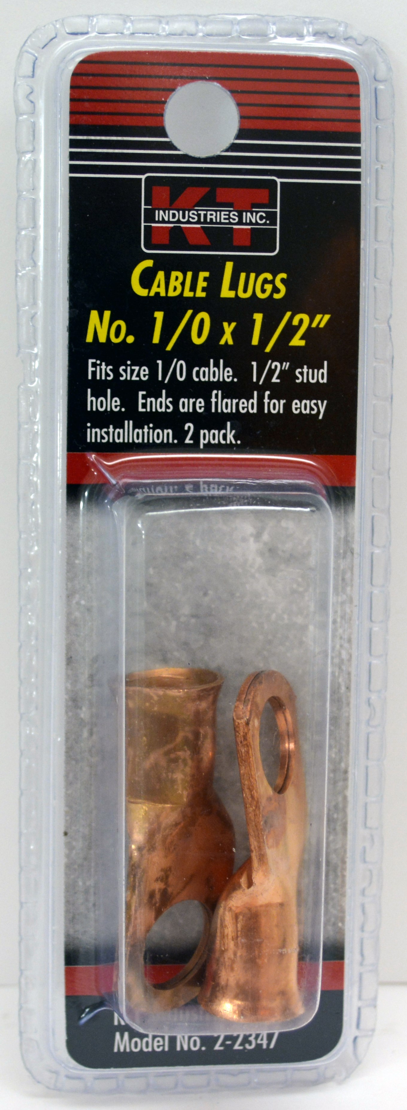 K-T INDUSTRIES COPPER CABLE LUG - 1/0 GAUGE, 2-PACKMake secure, high-conductivity electrical connections with these K-T Industries copper cable lugs. The solid pure copper construction ensures excellent conductivity and long service life for battery, welding, and general electrical applications.