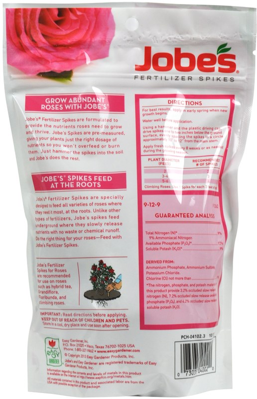 Easy-to-insert fertilizer s formulated for all roses. Slow release formula feeds up to 8 weeks