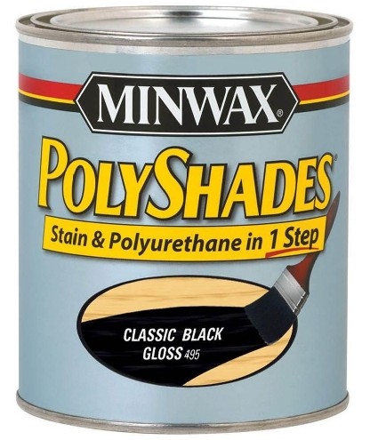Enjoy the benefits of an all-in-one stain and polyurethane with the Minwax PolyShades 1 qt. Classic Black Gloss Stain and Polyurethane. The stain and polyurethane is ideal for use on interior wood surfaces and is formulated for application with either a foam applicator or natural-bristle brush.