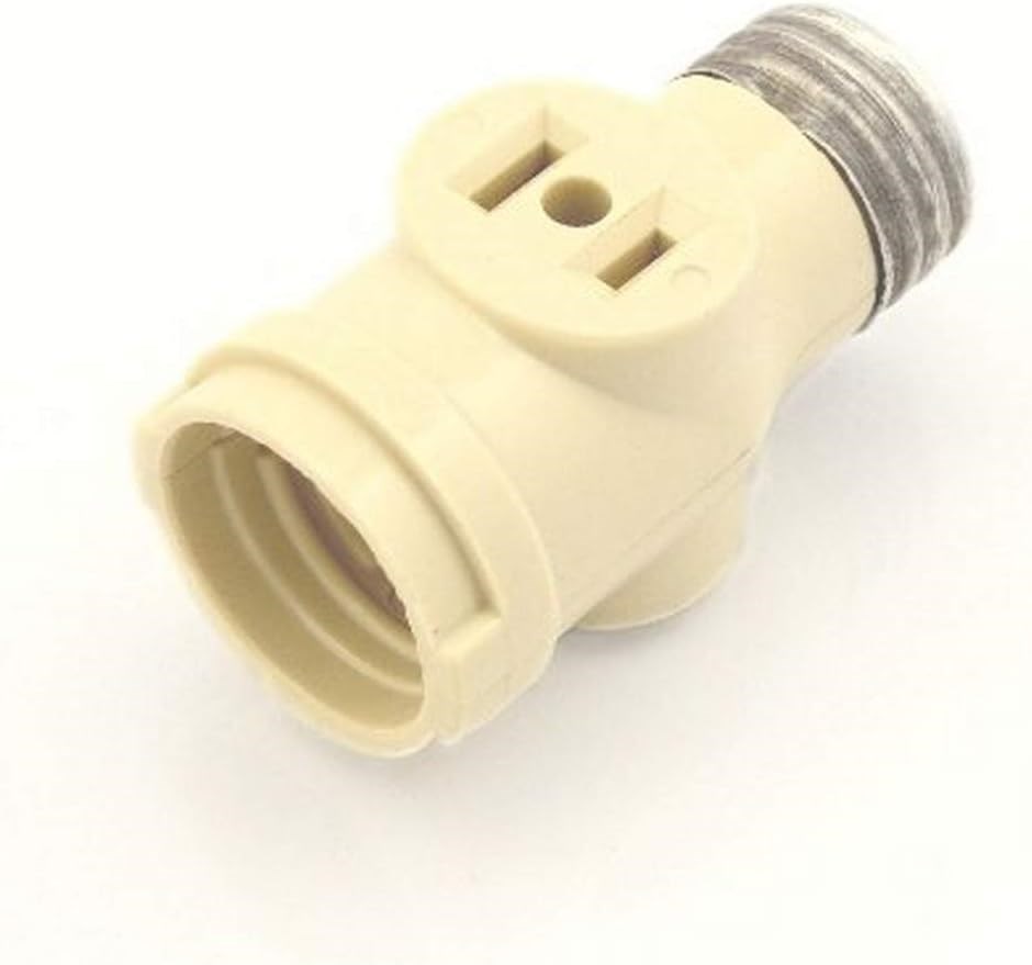 LEVITON TWIN SOCKET ADAPTER, IVORYThe Leviton twin socket adapter converts a single medium base light socket into a combination lamp holder plus two standard electrical outlets. A convenient solution for adding outlets in areas with limited wiring options.