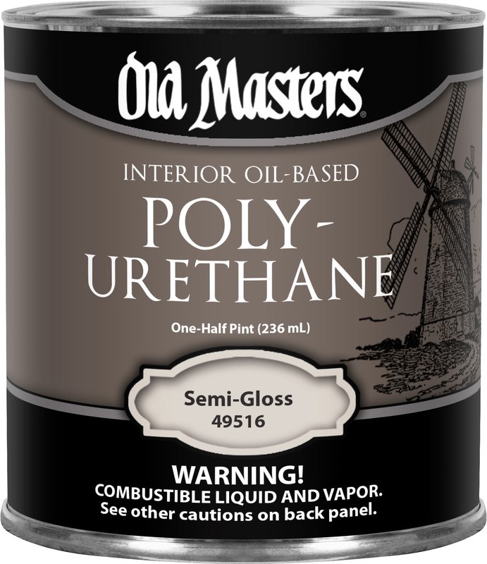 OLD MASTERS OIL-BASED INTERIOR POLYURETHANE - SEMI-GLOSSOld Masters Interior Oil-Based Polyurethane is a self-leveling, clear finish that protects and enhances the beauty of interior wood surfaces. This half-pint size is ideal for small projects like picture frames, jewelry boxes, and touch-ups. The semi-gloss finish adds a subtle sheen while providing lasting, durable protection.