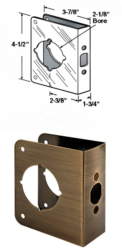 Lock/Door Reinforcer, Antique Brass ~ For 1 3/4" Doors