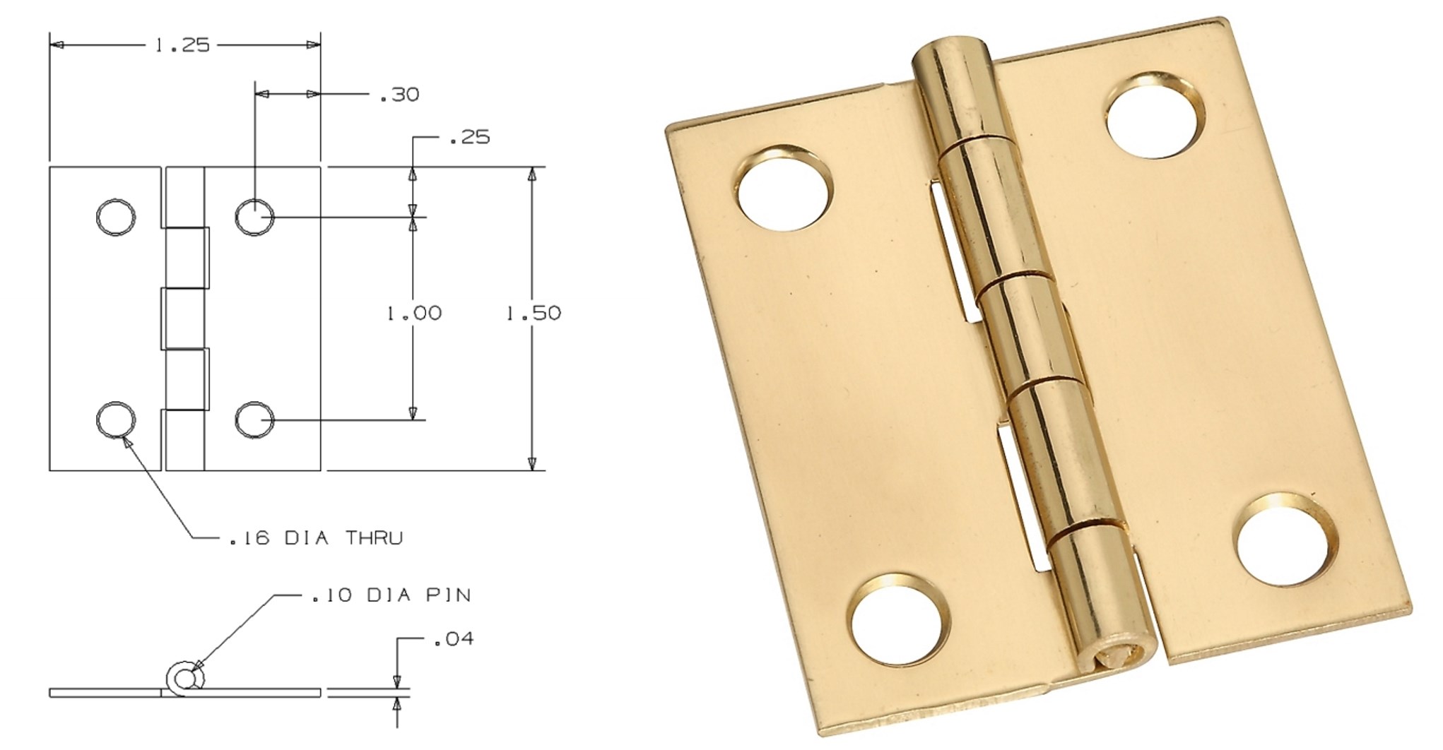 Decorative Broad Hinges, Brass Finish ~ 1.5" x 1.25"