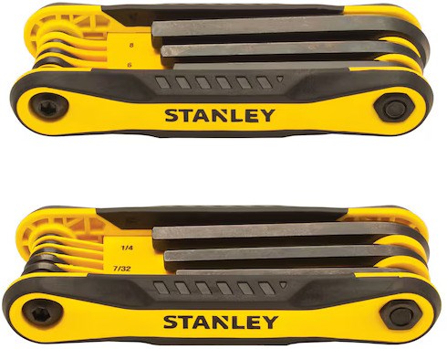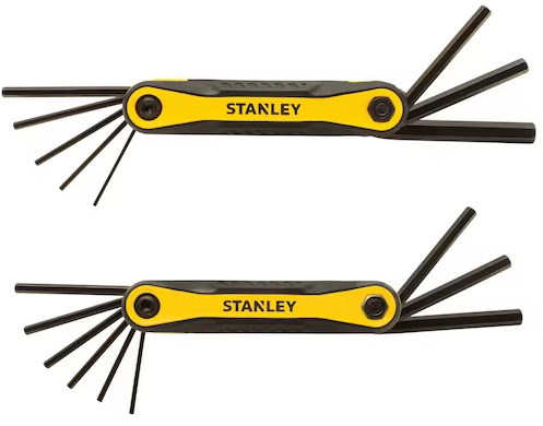 STANLEY 17-PIECE FOLDING HEX KEY SETAccess both SAE and metric hex fasteners with this compact folding hex key set from Stanley. The durable composite construction features rubber side inserts for a secure grip, while chamfered edges guide each key for smooth entry.