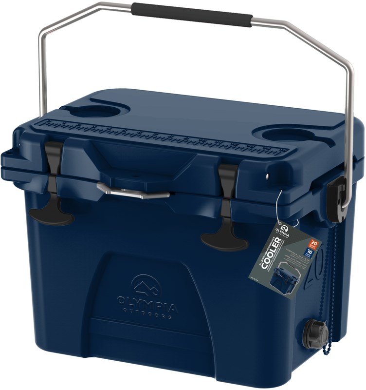 OLYMPIA 20 QUART HIGH PERFORMANCE COOLERThe Olympia 20 Quart High Performance Cooler in Midnight Blue keeps ice for up to 5 days thanks to premium insulation and a foamed lid. With room for 16 cans plus ice, this cooler is built for weekend camping trips, tailgating, and outdoor adventures.