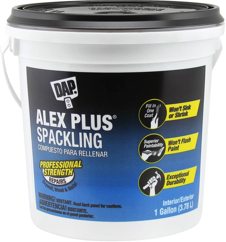 Alex Plus Spackling provides unsurpassed performance for filling holes & cracks in surfaces such as drywall, plaster, wood, brick, metal, and stone.
