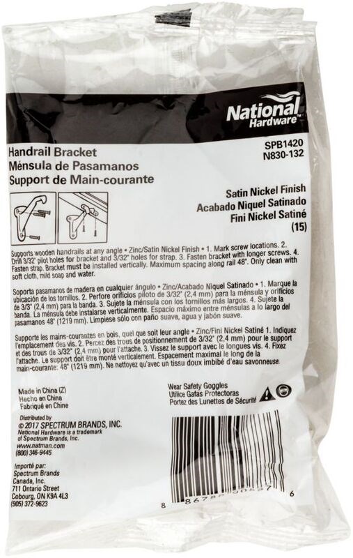 NATIONAL HANDRAIL BRACKET - SATIN NICKELThe National 1420 Series handrail bracket provides sturdy support for wooden handrails on stairways. Constructed from durable aluminum and zinc materials with a satin nickel finish that complements modern and contemporary decor.