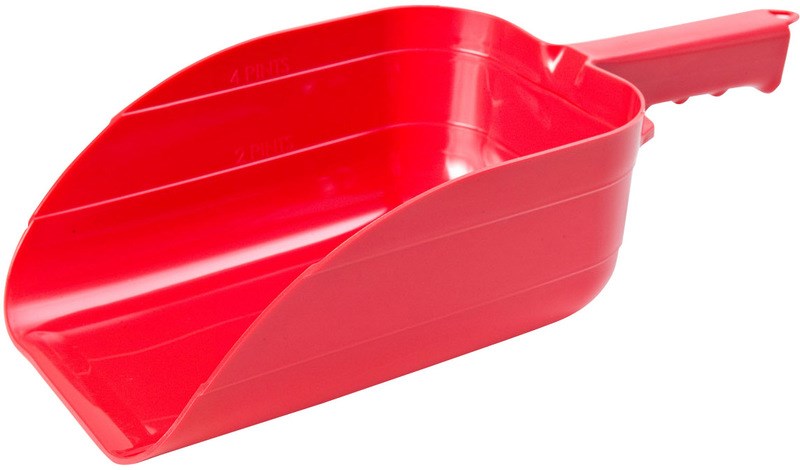 Deep structure with one flat sides makes for stable transfer of dry materials