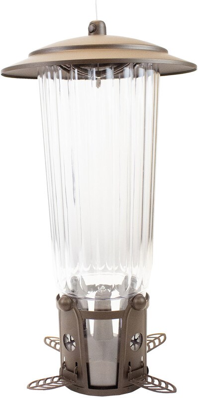 4-feeding stations w/ flexports prevent seed spillage & offer comfort for birds