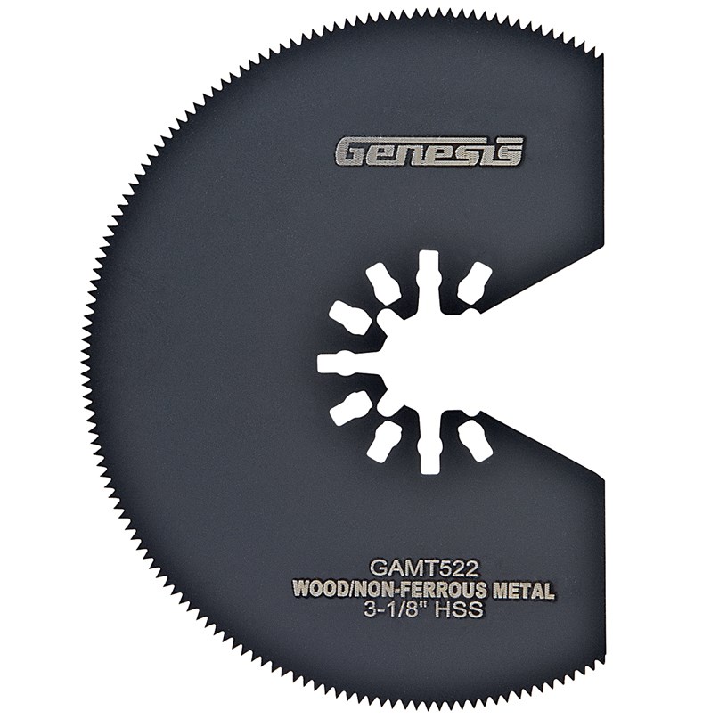 GENESIS SEGMENTED OSCILLATING SAW BLADE, HSS - 3-1/8"Cut through wood, drywall, plastic, and non-ferrous metals with this segmented oscillating saw blade from Genesis. The high-speed steel (HSS) construction delivers reliable cutting performance, and the universal quick-fit design works with most oscillating multi-tools without an adapter.