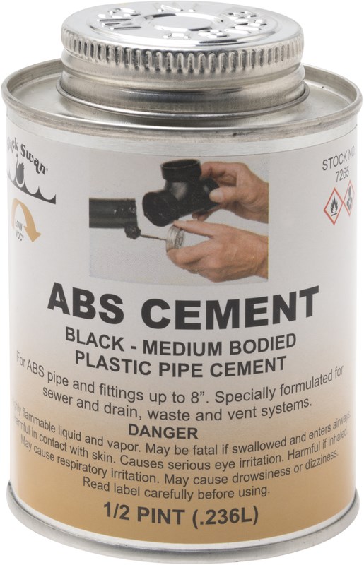 • A black, medium bodied, medium to fast set, high strength ABS solvent cement
