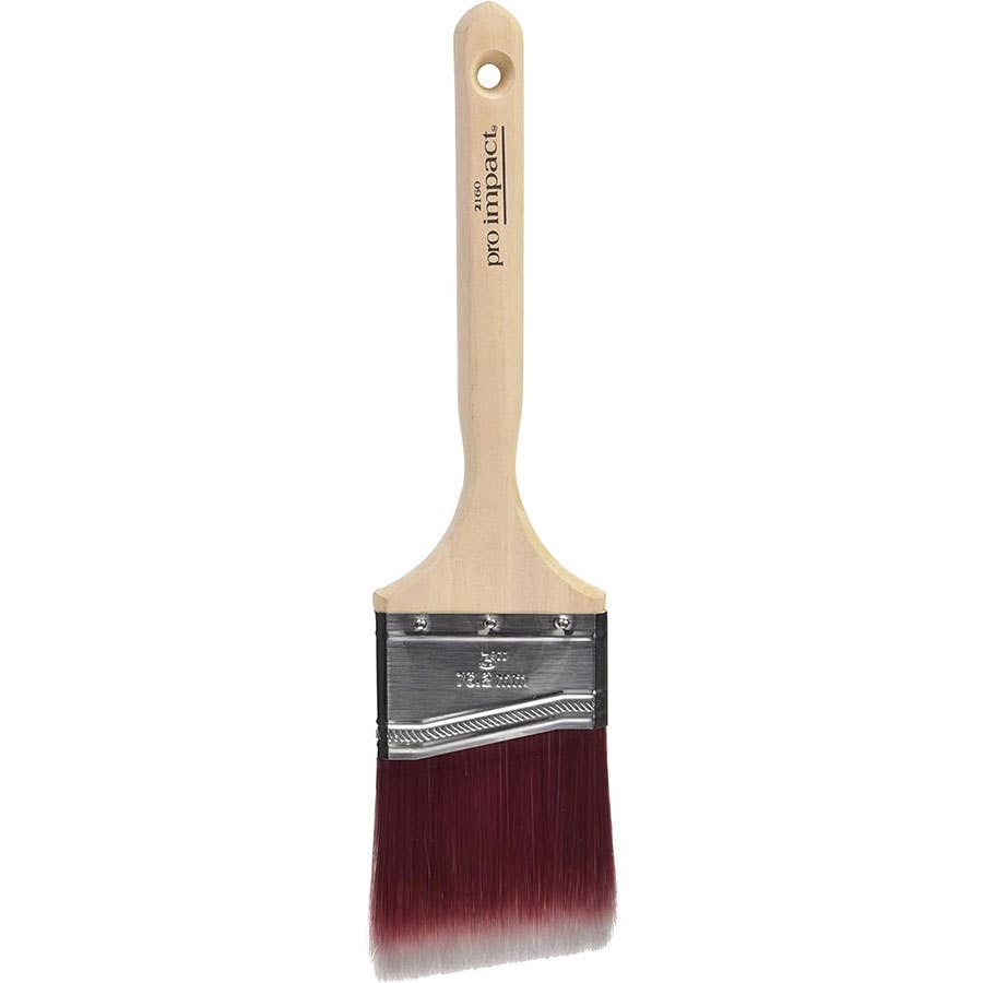 LINZER PRO-IMPACT POLY BLEND SASH BRUSH - 3"Achieve clean lines and smooth finishes with this Linzer Pro-Impact angled sash brush. The poly blend bristles with chiseled trim provide excellent paint pickup and release for all types of paints. Built with a natural wood handle and stainless steel ferrule for lasting durability.