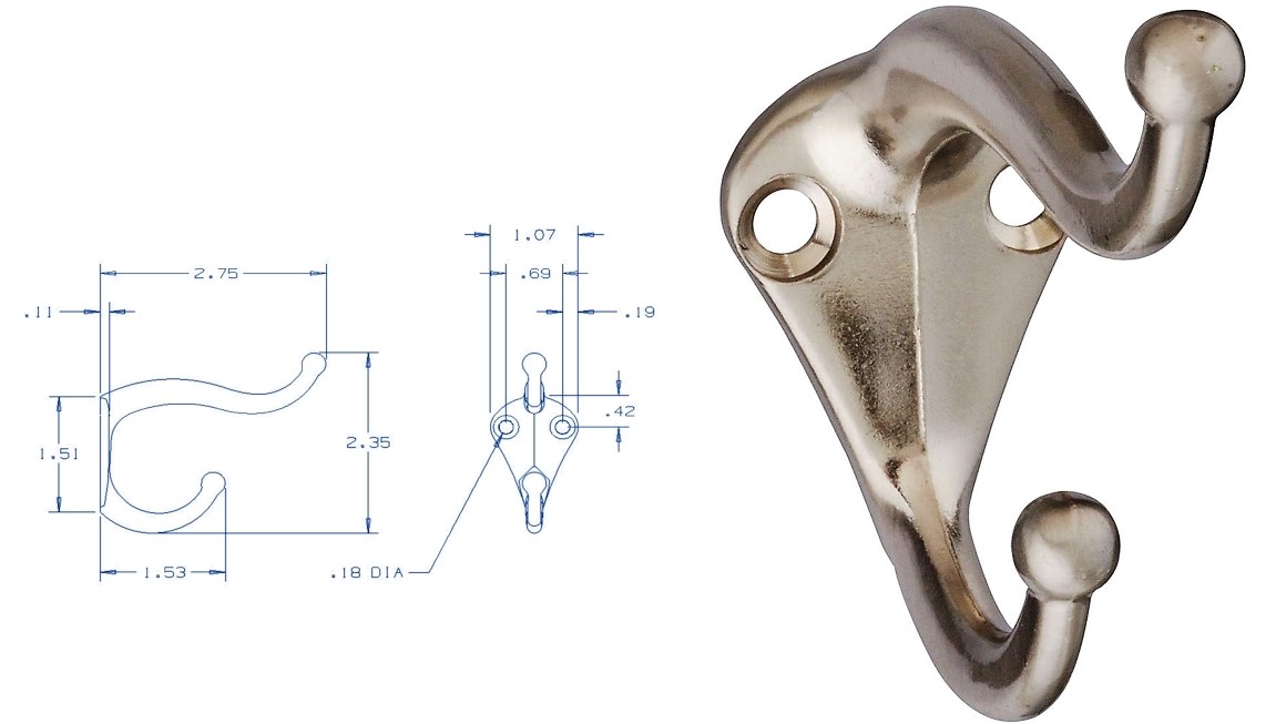 Hat & Coat Hooks 160 Series, Satin Nickel Finish