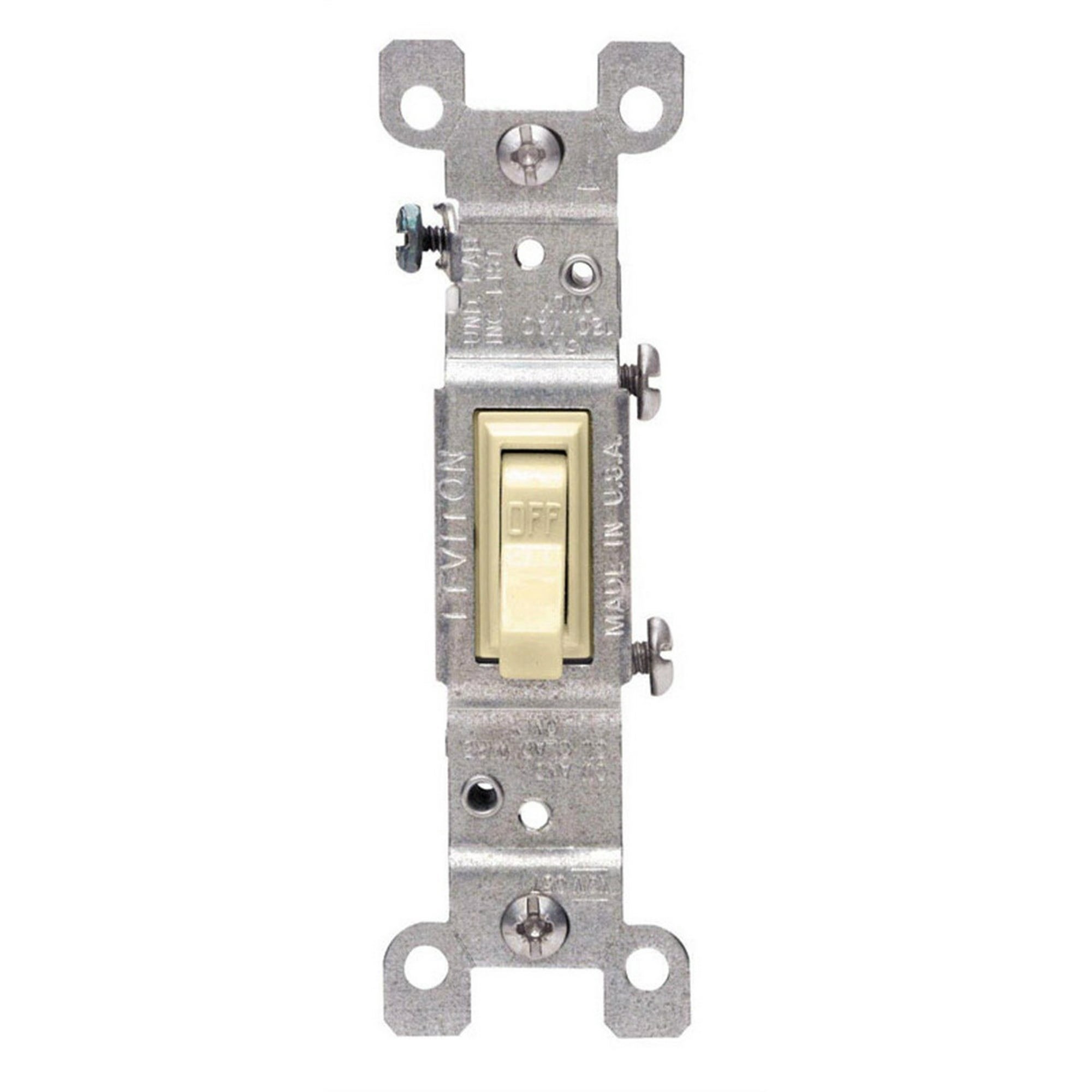 The single pole grounded switch features quiet operation. Its framed toggle design facilitates rapid installation through combination side and Quickwire push-in wiring, enhancing user-friendliness. This switch is designed to control one fixture from a single location, making it a vital component in electrical installations.