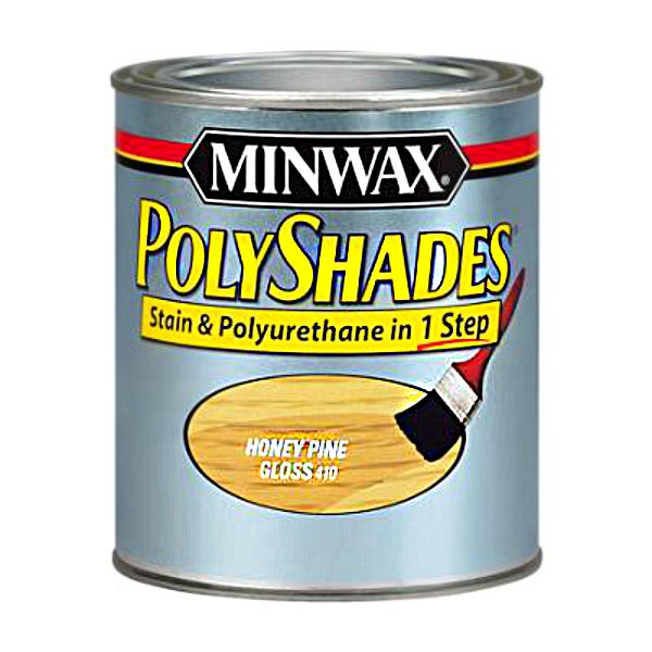 Minwax® PolyShades® combines beautiful wood stain and polyurethane in one simple step. Minwax® PolyShades® provides rich wood color and long lasting protection while enhancing the wood grain. Polyshades® will reduce finishing time compared with staining with one product and protecting with another.