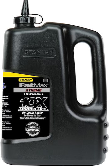 STANLEY FATMAX XTREME BLACK CHALK - 5 LBStanley FatMax Xtreme 47-828 Black Chalk in the economical 5-pound size provides high-visibility marking on light-colored surfaces. The waterproof formula performs in any weather condition and is ideal for contractors and professionals.