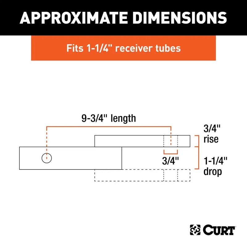 Fits trailer hitches 1-1/4"x1-1/4" receiver tube