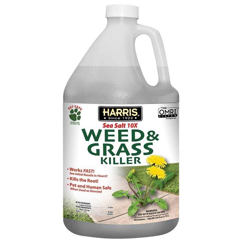 HARRIS SEA SALT AND VINEGAR WEED KILLERHarris Sea Salt 10X Weed and Grass Killer uses natural sea salt and vinegar to eliminate weeds and grass quickly, with visible results in hours. This ready-to-use formula kills down to the root and is safe for pets and humans when used as directed. Residues degrade promptly in the soil.