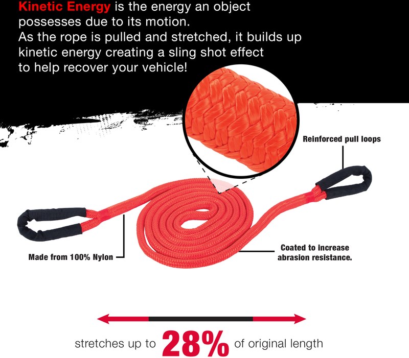- As the rope is pulled and stretched it builds up kinetic energy creating a sling shot effect to help recover your vehicle