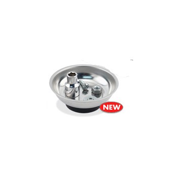 Smooth stainless steel tray has powerful ceramic magnets with rubber covers in base