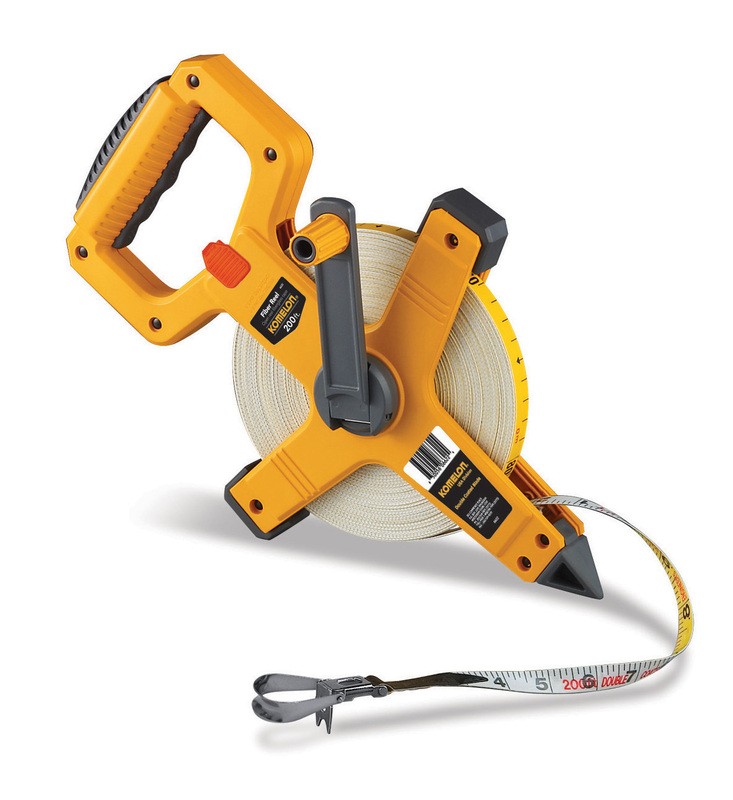 Komelon's open reel fiberglass tapes are perfect for all of your long measuring needs. The double coated fiberglass blade is waterproof and dirt resistant. The coating also protects the markings and graduations from chemical and mechanical abrasion. In addition to a heavy duty abs frame, this tape has a two color blade with double sided printing (engineer scale on back of blade) and a versatile ring end hook and claw. The 6622 is great on any jobsite or athletic field.