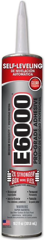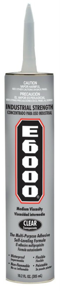 An indispensable maintenance tool, E6000 allows the kind of permanent repair and maintenance of equipment that may have been too expensive or difficult in the past. E6000 provides adhesion strength and versatility not found in silicones and rubber cements. Its strength in adhering metals, glass, rubber and plastics makes it a universal vehicle maintenance and repair solution. Also, because it's self-leveling, E6000 may be used as potting material in electrical and computer applications.