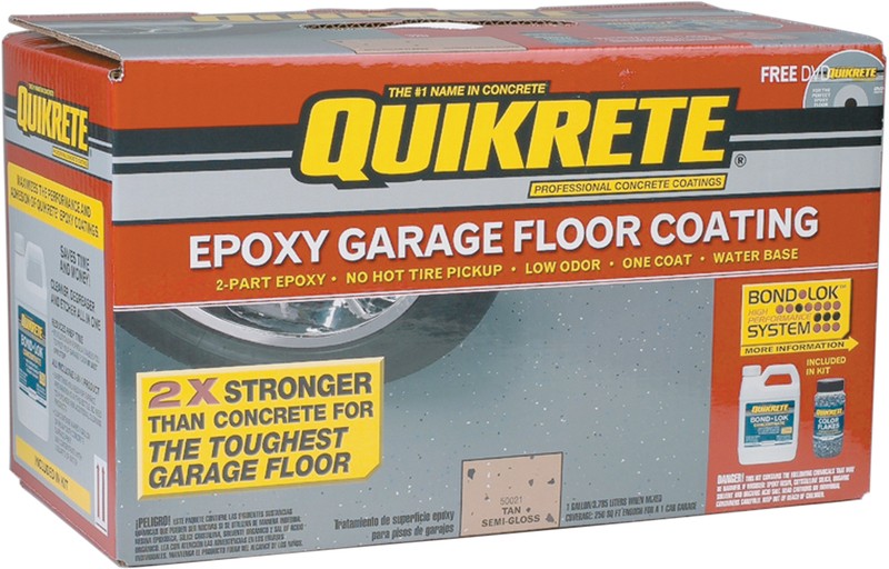 Quikrete's Epoxy Garage Floor Kit delivers the toughest garage surface in one coat. This water-based, two-component epoxy delivers a semi-gloss coating that is two times stronger than concrete, and is fortified with a new, heavy-duty resin technology that provides superior durability and protection against damage caused by hot tires, gasoline, oil, scuffs, wear and tear.