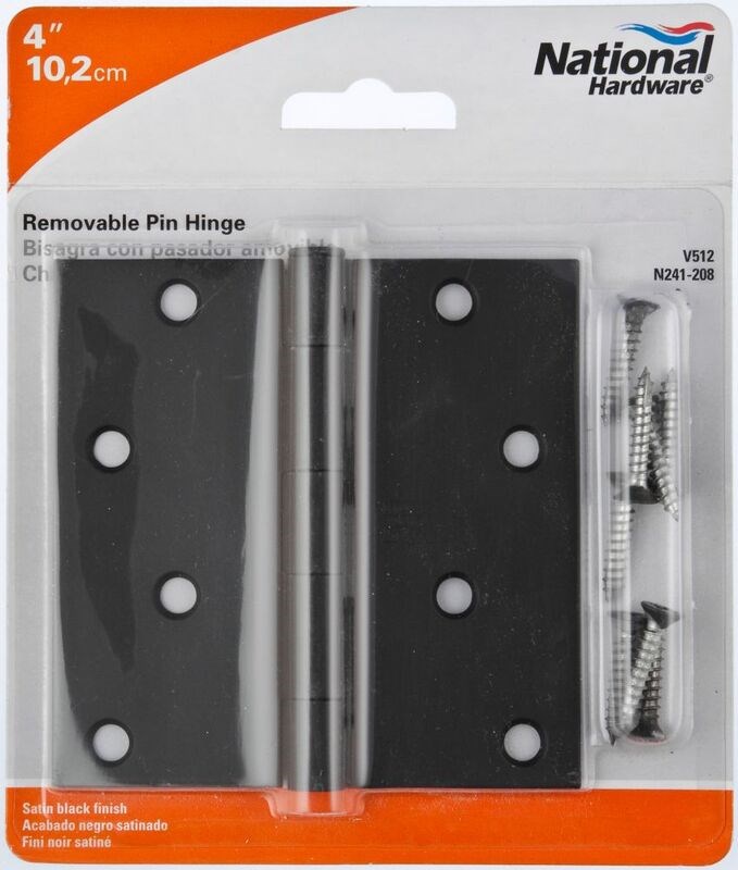 Another fine National Hinge Product: Heavy-gauge cold-rolled steel for added strength, nib on hinge for finished appearance, Five knuckle, full mortise design, square corners, screw holes are countersunk, removable pin for easier installation or removal of doors.