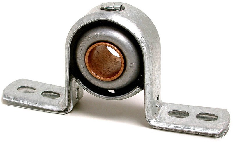- Steel housing with internal bearing, rubber ring, and cushion