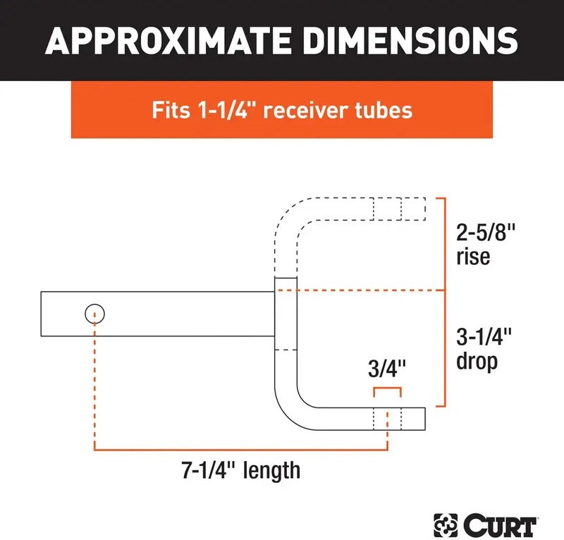 Fits trailer hitches 1-1/4"x1-1/4" receiver tube