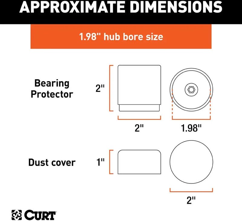 CURT BEARING PROTECTORS WITH DUST COVERS - 2-PACKProtect your trailer wheel bearings from dirt, water, and road grime with these Curt bearing protectors. Designed for 1.98" hub diameters, they maintain pressure and keep bearings well-lubricated even when submerged during boat launching.