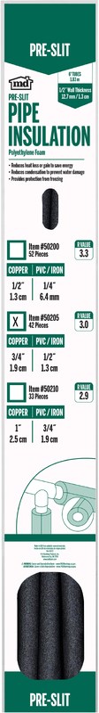 M-D PRE-SLIT FOAM PIPE INSULATION - 7/8" x 6 FTM-D Building Products pre-slit foam tube insulation reduces heat loss through hot water pipes by up to 80% and prevents condensation on cold water lines. The pre-slit design slips easily over existing pipes for quick installation without tools or disconnecting plumbing.