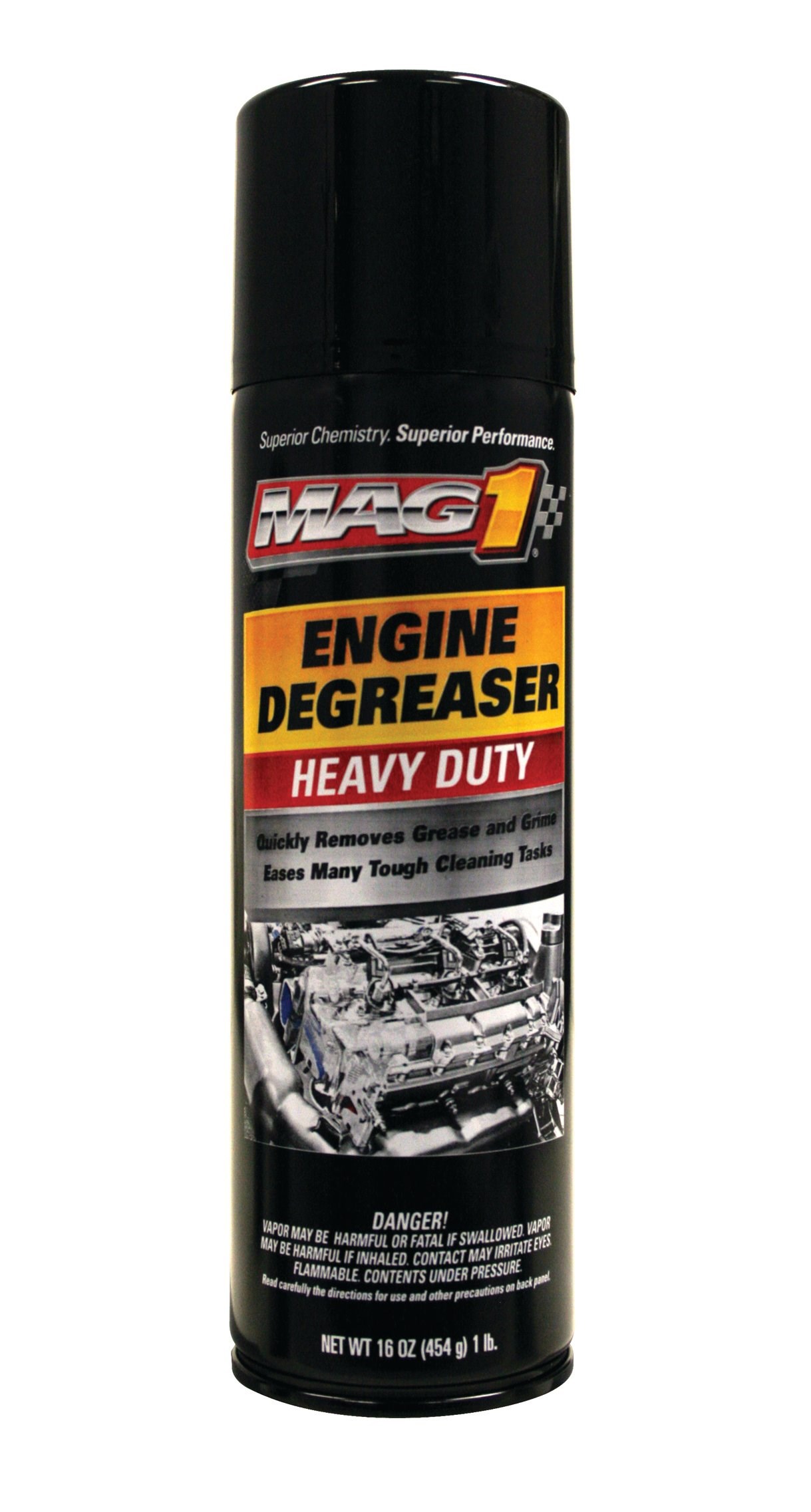 MAG1 HEAVY DUTY ENGINE DEGREASER - 16 OZMAG1 Heavy Duty Engine Degreaser quickly and effectively removes the toughest oil, grease, and road grime from engines, transmissions, and motors. The high-power spray provides fast coverage for quick cleaning, and the formula is safe to use on plastic components.