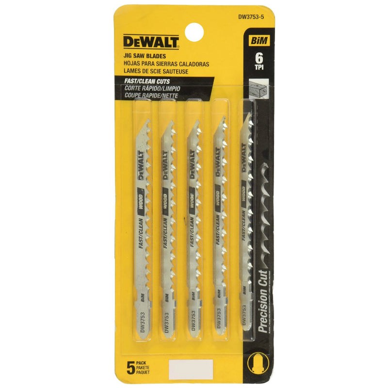 DEWALT T-SHANK CLEAN CUTTING WOOD JIG SAW BLADE - 4"DeWalt's clean cutting jig saw blade combines faster cutting speed with a clean finish. The 6 TPI tooth count removes material quickly while still producing neat, usable edges for general woodworking.