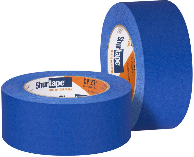 SHURTAPE CP-27 14-DAY BLUE PAINTER'S TAPE - 1-1/2" x 60 YDPremium grade, medium adhesion painter's tape for interior and exterior masking of multiple surfaces including painted walls, glass, vinyl, metal, and wood. The synthetic rubber-based adhesive prevents lifting and paint seepage while allowing clean, no-residue removal for up to 14 days.