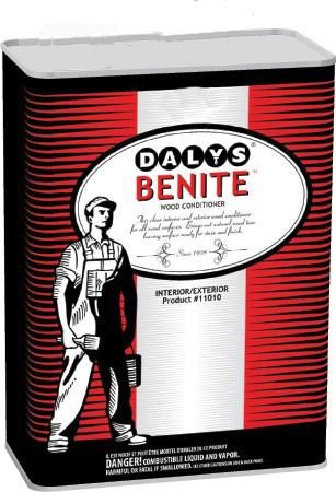 A deeply penetrating wood conditioner which becomes an integral part of the wood cell structure. It does not leave a surface film, and reduces the possibility of grain raising. Benite is excellent as a pre-conditioner to avoid "spotty" stain and finish penetration. Because it penetrates, it does not chalk, crack, peel, or blister. Gives added life to weather-worn exterior stained surfaces.