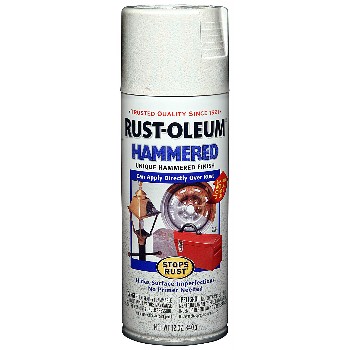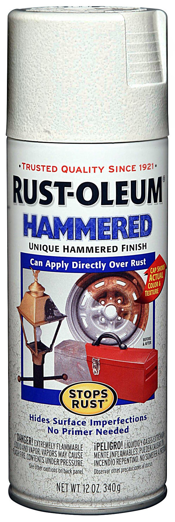 Rust-Oleum Hammered is a distinctive hammered look that hides flaws and imperfections found in scratched, rusted or pitted metals. Apply directly over rust. Works on wheelbarrows, lighting fixtures, wheel rims and other metals as well as wood, concrete and masonry. It features a comfort tip with a wider finger pad to reduce fatigue caused by continuous spraying.