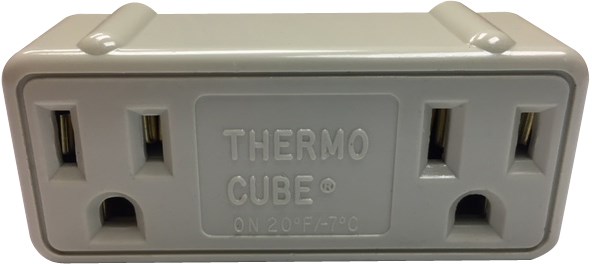 THERMOCUBE TC-2 THERMOSTAT CONTROLLED OUTLETThe ThermoCube is a unique, patented electrical device that plugs into a standard 15 amp outlet and automatically turns power on and off based on outside air temperature. Save money by only using power when temperatures require heating.