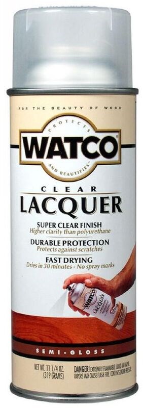 WATCO Lacquer Clear Wood Finish Spray is the finest lacquer available. Apply to furniture, doors, cabinets and paneling for a crystal-clear, durable wood finish and seal. Dries in 30 minutes and does not require sanding between coats. Please read product labels for additional directions and precautions before using.